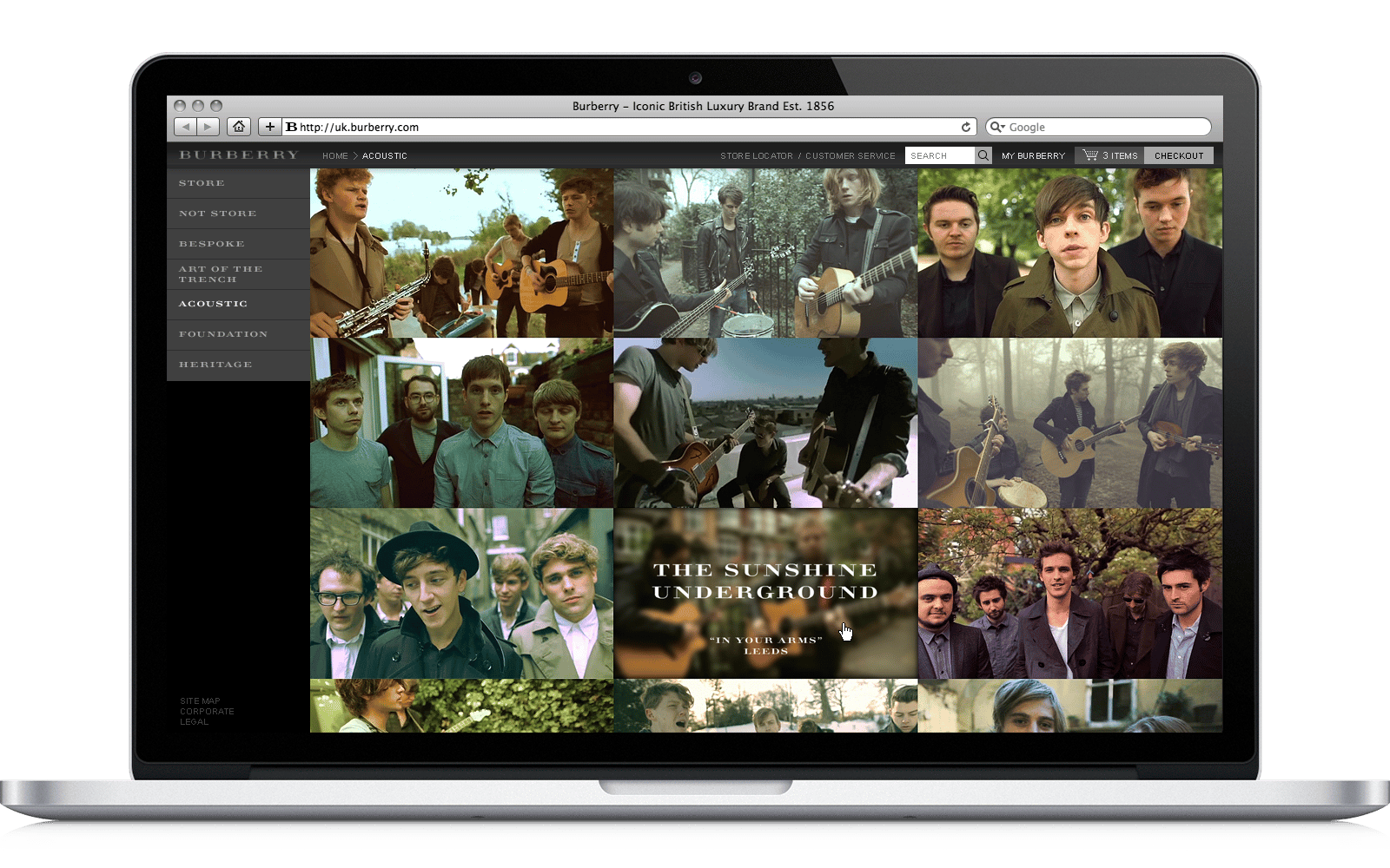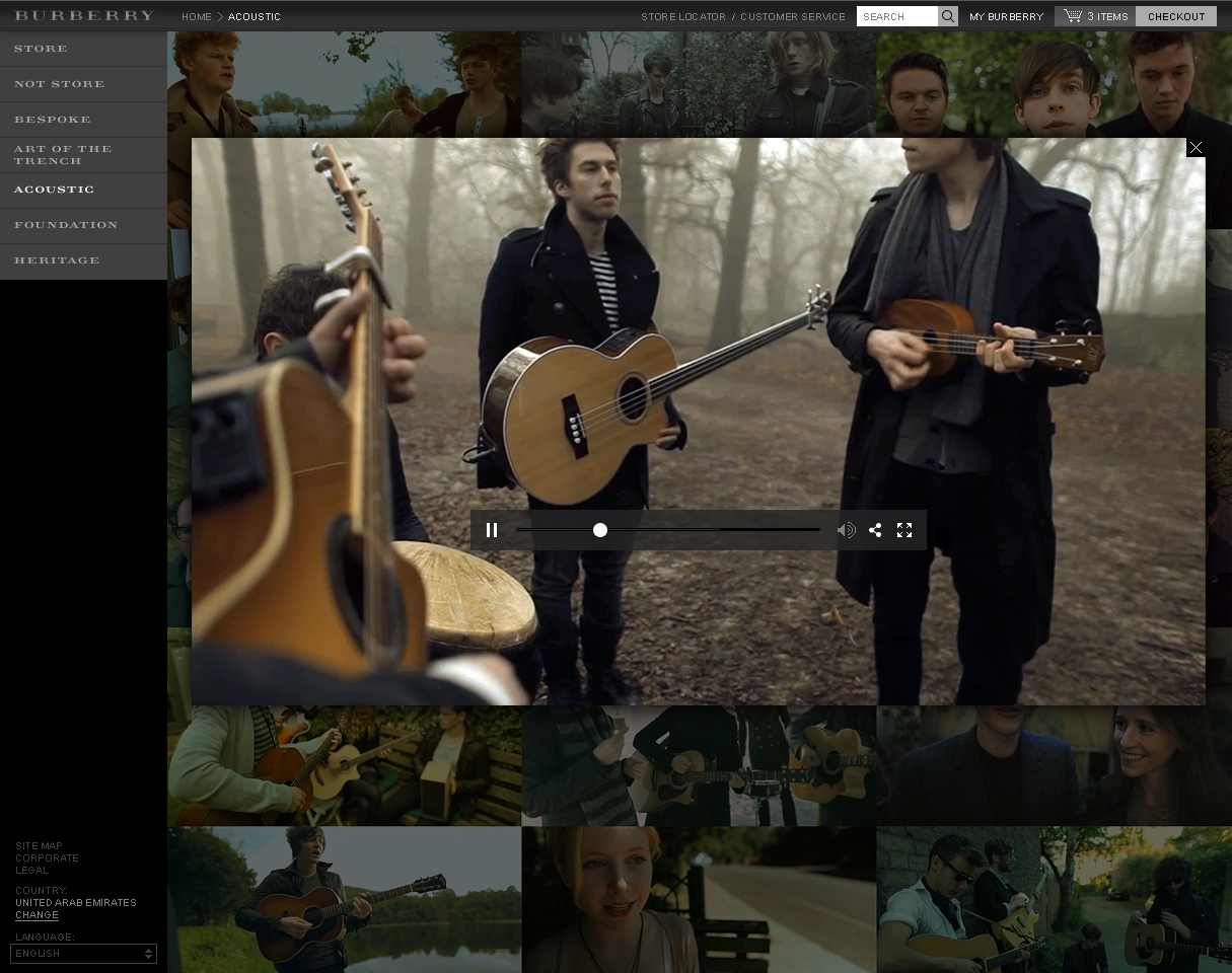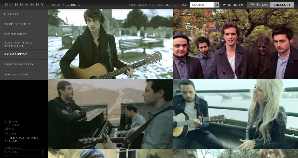 The Burberry Acoustic Project showcases young British bands that Burberry believes in. Users can watch videos of the bands performing acoustic songs, while wearing clothes from the Burberry collection.